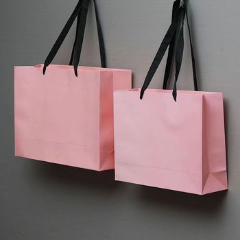 שקיות נייר ורוד מותאם אישית אקולוגי עם הדפסה personalizate לוגו ידית חבל גואנגג 'ואו ידית חבל